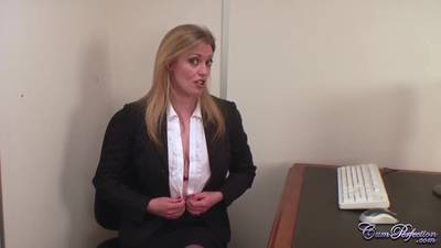 To get through a job interview, Holly Kiss tests the candidate's skills and stamina by pumping them up to the final & facial explosion!