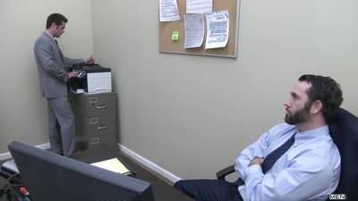 Horny dudes, Mike De Marko and Tyler Hunt, decide it's better to fuck in the office, instead of working.