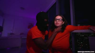 Crystal Chase, babe with huge breasts hunts down a malefactor only to be trapped by him, who is unscrupulous and has an XXXL black cock to fuck her with