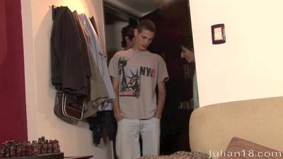 Three male teen and horny friends, decide to fuck each other's butts in the living room. Enjoy this gay teen threesome!