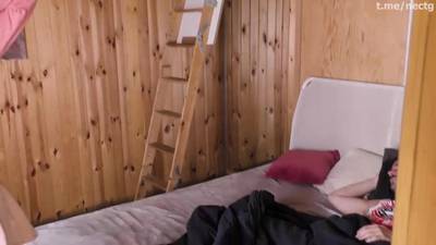 A skinny blonde, seduces the husband of her brunette friend, with her shaved smooth pussy, after the three of them share a bed.