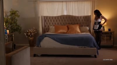 Beautiful Autumn Falls, a Latina slut dressed only in stockings sucks a guy's big cock and gets a powerful pussy fuck, until her big tits tremble!