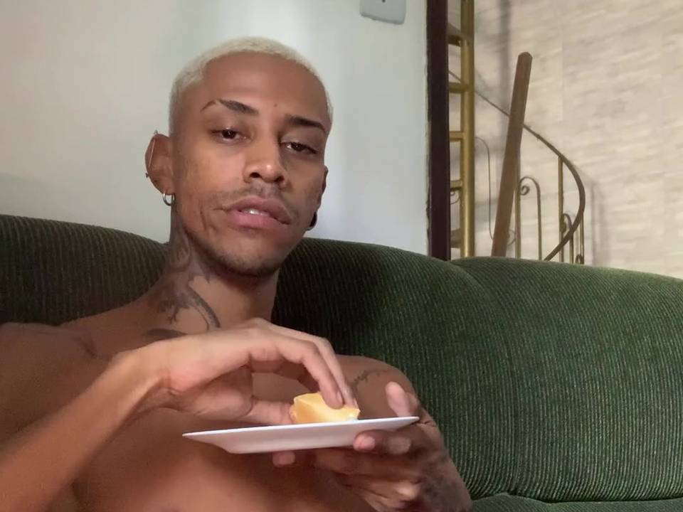Yuri Oberon, seduce his loyal amateur viewers with his long cock jerking off session and by eating fruit. Tasty!