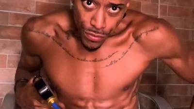 Naked and horny, Yuri Oberon, pumps his long cock with a sex toy, solo. He loves to jerk off and cum, by himself.