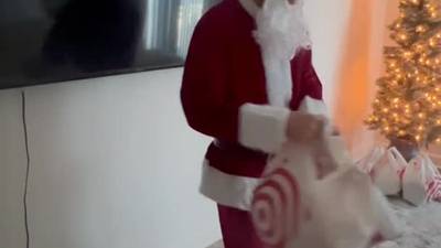 Santa came to deliver his cum to this slutty brunette