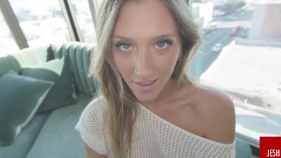 Blonde Addison Vodka, sucks her lover's dick and gets fucked doggystyle and at the end, she drinks all the cum with gusto!