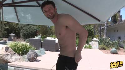 Joe strokes his cock all the time. In the pool, laying on his sofa, standing up; he explodes all over the floor and camera, because he wants you to get hard.