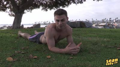 Andy gets naked, busts a nut and fingers his hairy ass, non-stop. He looks so good!