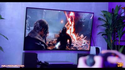 A tattooed brunette with big tits and a fat ass in a cosplay outfit, sucking a big cock and riding it on her back, just like a cowgirl in POV!