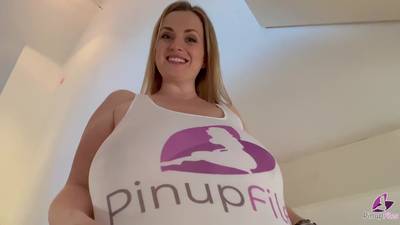 Huge natural boobs delight everyone! Blonde Maria Body, caresses them, touches them and reveals them, from under her shirt.