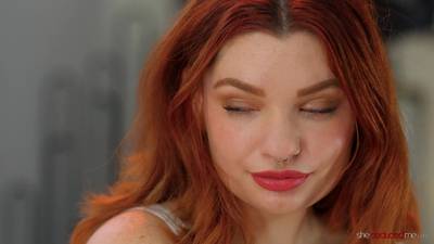 Beautiful lesbians, redhead and brunette Annabel Redd and Rachel Rivers, meet for sex. Foot massage, cunt licking and fucking with a strap-on, hot!