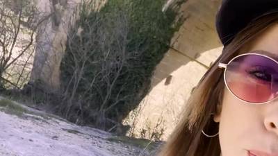 Blonde slut Littleangel84 goes for a walk near a lake so she can show off her brand new tits and her fit body