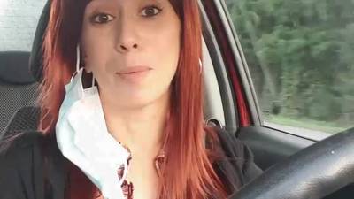 French LittleAngel84 shoves a cucumber up her ass behind the store