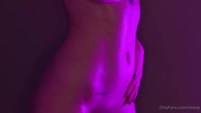 Blue haired Vixenp shows off her body. Uses oil to massage her incredibly hot body while caressing her big tits and big ass
