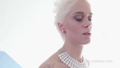 Mila and Betty play a little bit with each other before some horny men join them to fuck their holes hard and deep, including double anal