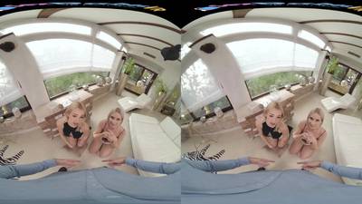 Sharon White and Sofi Otis explode with desire, mixing pleasure and sensual games, their bodies igniting in a raw fuck until the cumshot on her big tits.