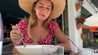 Blonde Agata is so happy to walk around, tits free!