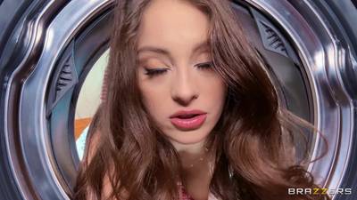 Maddy May is stuck in a machine and her husband is trying to help her but the pizza guy arrived. He eats his pizza and pizza guy helps her by fucking