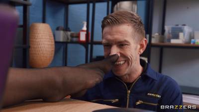 Janitor Danny D sticks his cock in between Coco Rain's feet