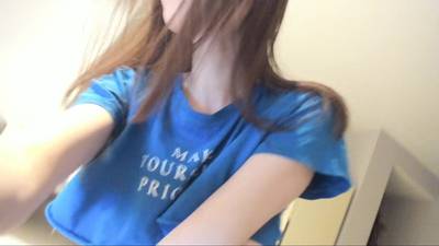 This skinny brunette girl, gets herself in front of the camera to tease you. She gets naked and oils her slim sexy body and big boobs, playing with her toys.