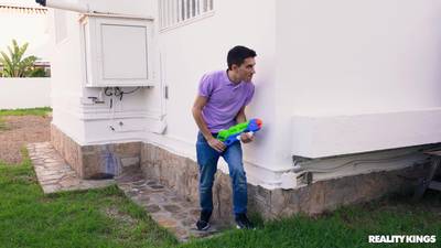 Jordi Polla decides to prank her new stepmom Carla Boom by getting her fat tits wet! She doesn't like so she teaches him a lesson by making him suck her pussy!