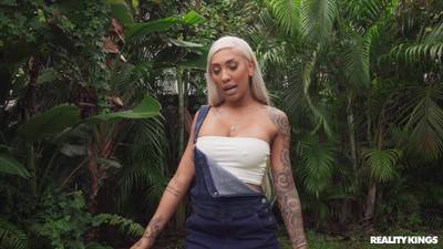 Once Kona Jade finishes her gardening vlog, she starts spraying herself with water because shes feeling horny! Logan comes in and extincts the fire in her pussy