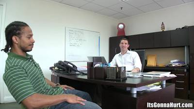He mets a black guy when he was looking for someone to work with. When he goes with him, they realize that what they both want is interracial gay sex!