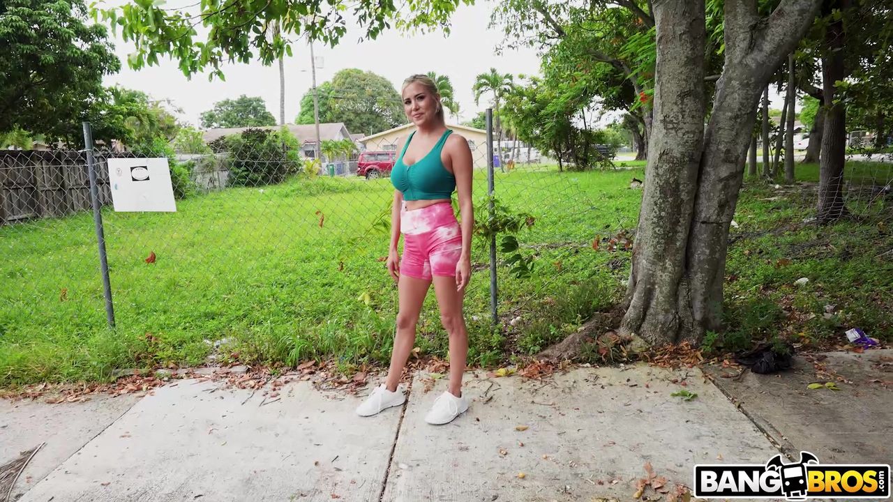A sexy blonde jogger is approached in the street by two guys for a car fuck. She's not shy and she agrees to enjoy getting her pussy pounded during the ride