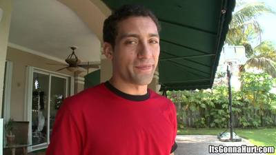 This brunette man is nervous knowing he's about to face a dragon! A big fat and thick black cock! Once he grabs his cock he's pretty sure that it's gonna hurt