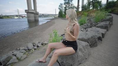 There are few people in the park, so she takes the opportunity to walk around naked, even if some people see her that way, that's what gives her the most excitement.