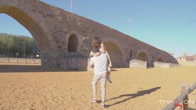 David El Moreno and Kiti, a teen girl with a hairy pussy, fuck wildly in the great outdoors.