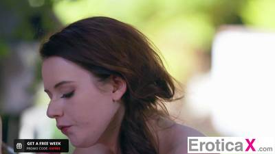 Brunette teen on all fours getting fucked from behind in the backyard