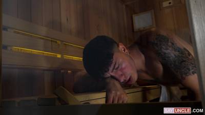 These latino teens met at the sauna. Since they were alone, they start kissing, sucking each other off and eating their asses.