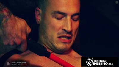 This man gets strapped up and dominated by two muscular guys. They tease him with sextoys then fuck him in a spitroast position.