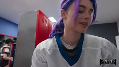 Referee GI Joey comes in the locker room to check on her girl Spiraling Spirit, but she's too horny and wants him to suck her pussy right there!
