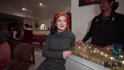 At a wild house party, Sawyer Kelly sneakily pulls out James Angel's big cock and sucks it before he pounds her fat ass doggystyle!