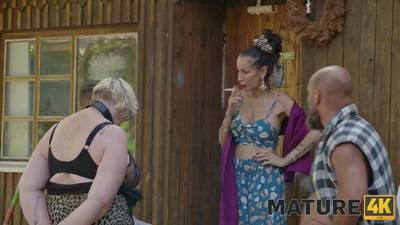 This busty mature babe is called Taming Chubbacca, a mature BBW, who gets fucked doggy style outdoors with passion between several guys.