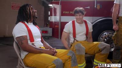 Eva Angelina challenges the entire fire department to a last man standing gangbang. They fuck her mouth, pussy and ass at the same time and cum on her big tits