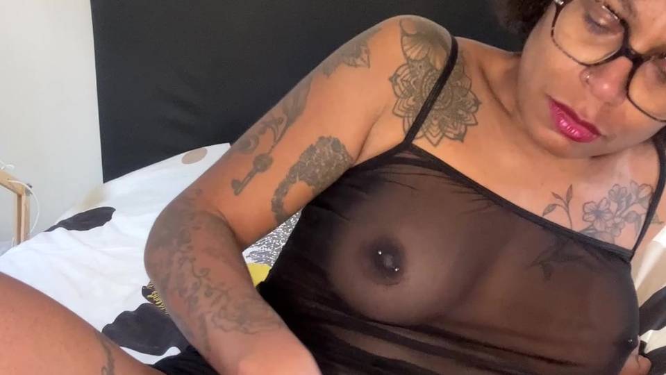 Prisca is a black MILF in lingerie who masturbates on webcam. Her hairy pussy vibrates with every touch, moaning loudly until she cums