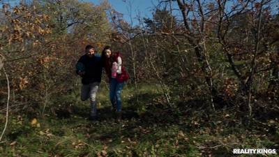 Tourist Candie Luciani and Juan Lucho ask a hiker to film them fucking in the woods, fingering and pounding her pussy against a tree