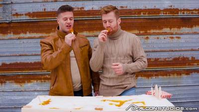 After sucking some sweets, all Olivier Robert wants is to suck redhead Clark Delgaty's cock and get fucked by him outdoors