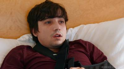 This teen Ricky Spanish has both arms broken and he's feeling horny. So Dana Vespoli comes in and helps him by jerking and sucking him off