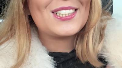 While in the car, Lea turns on her camera to show us how she sucks a fake penis and then shows us her fleshy pink pussy.