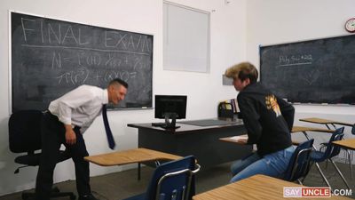 This pervy teacher promised his twink student that he'd give him good grades only if he sucks his dick and rides it hard