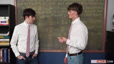 College teens take advantage that no one is in the classroom to suck each other's cocks and eat each other's tight assholes