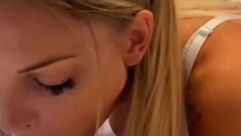 The beautiful blonde arrives dressed, but a few mins later she will take off everything so that he can get his penis hard and when he is ready she will suck him