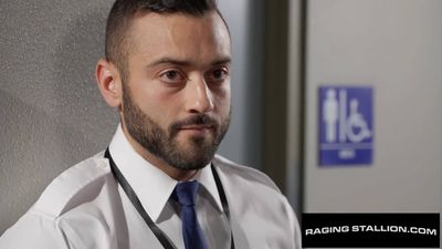 While waiting for the plane, these two hairy men get into the bathroom and lock it so they could suck and fuck privately!
