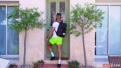 This muscular man gets home and starts jerking off his cock. His roommate then arrives and joins him and they start giving handjobs to each other