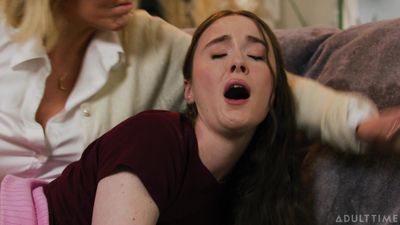 Nanny Ryan Keely needs to punish this bratty teen Hazel Moore for behaving bad. She slaps her ass and fucks her with a strapon!