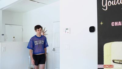 This mean stepdad makes his stepson give him a foot massage, then he pulls out his cock and makes him stroke it while he fingers the twink's ass